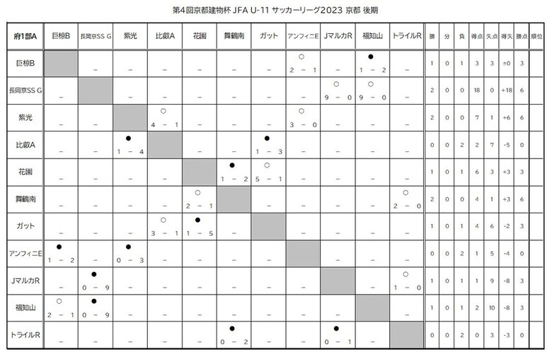 第4回「京都建物杯」JFA U-11 サッカーリーグ京都 試合結果