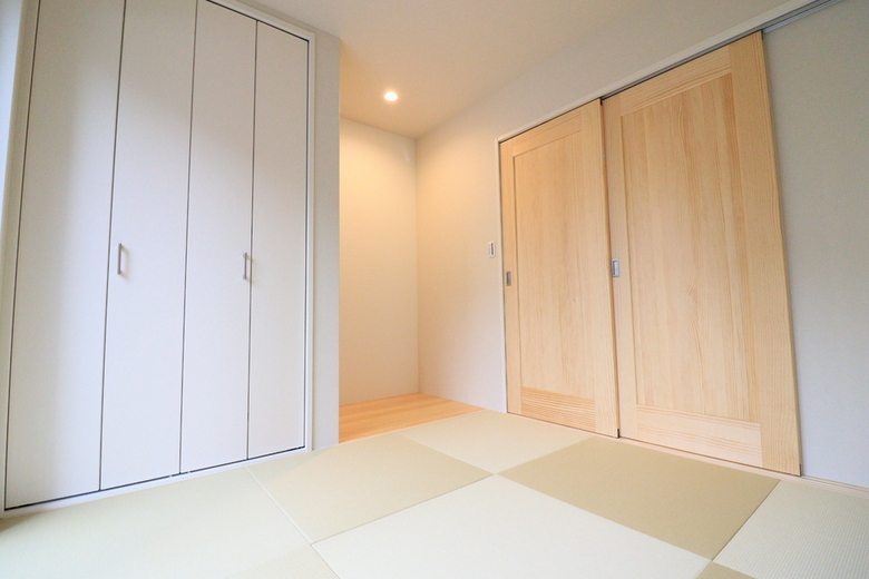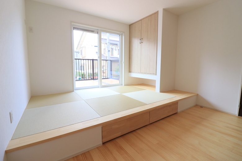 あえて和室をフラットにせず段差を付ける事で、下部には引出収納を設けることが出来ます。