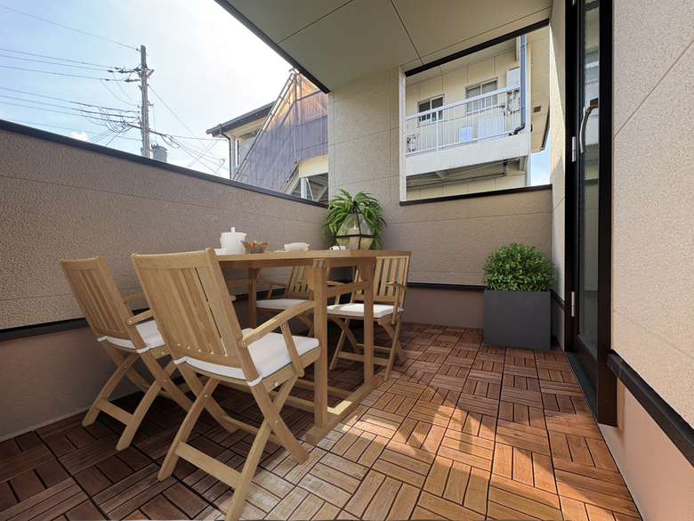 ハイウォールタイプのバルコニーを採用し、